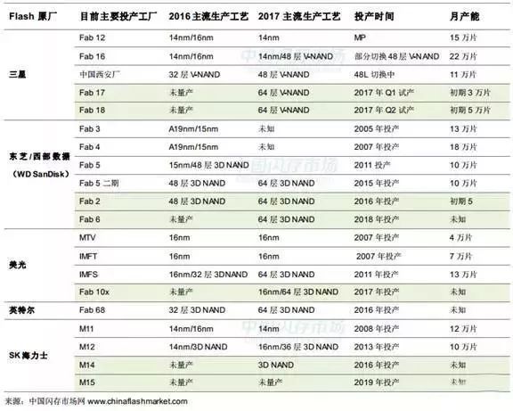 圖|目前NAND主要大廠生產(chǎn)工藝和月產(chǎn)能