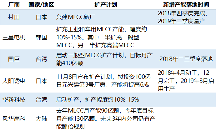 全球主要MLCC廠商擴(kuò)產(chǎn)計(jì)劃如下: