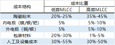 MLCC主要成本構(gòu)成如下: